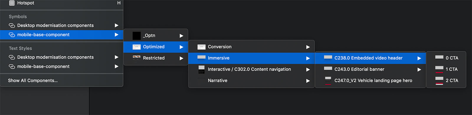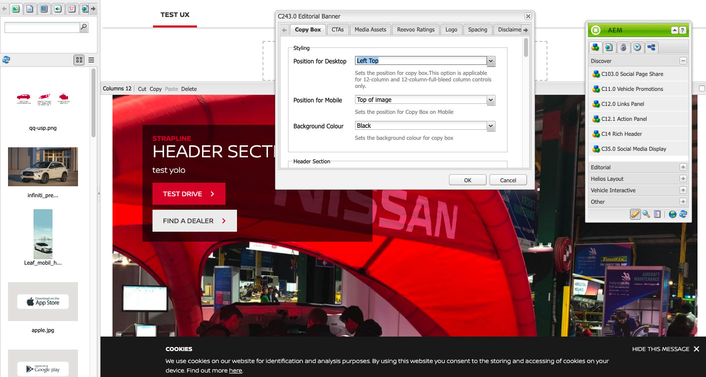 - Utilisation d’AEM (CMS Nissan) afin de définir les règles d’utilisation de chaque composant