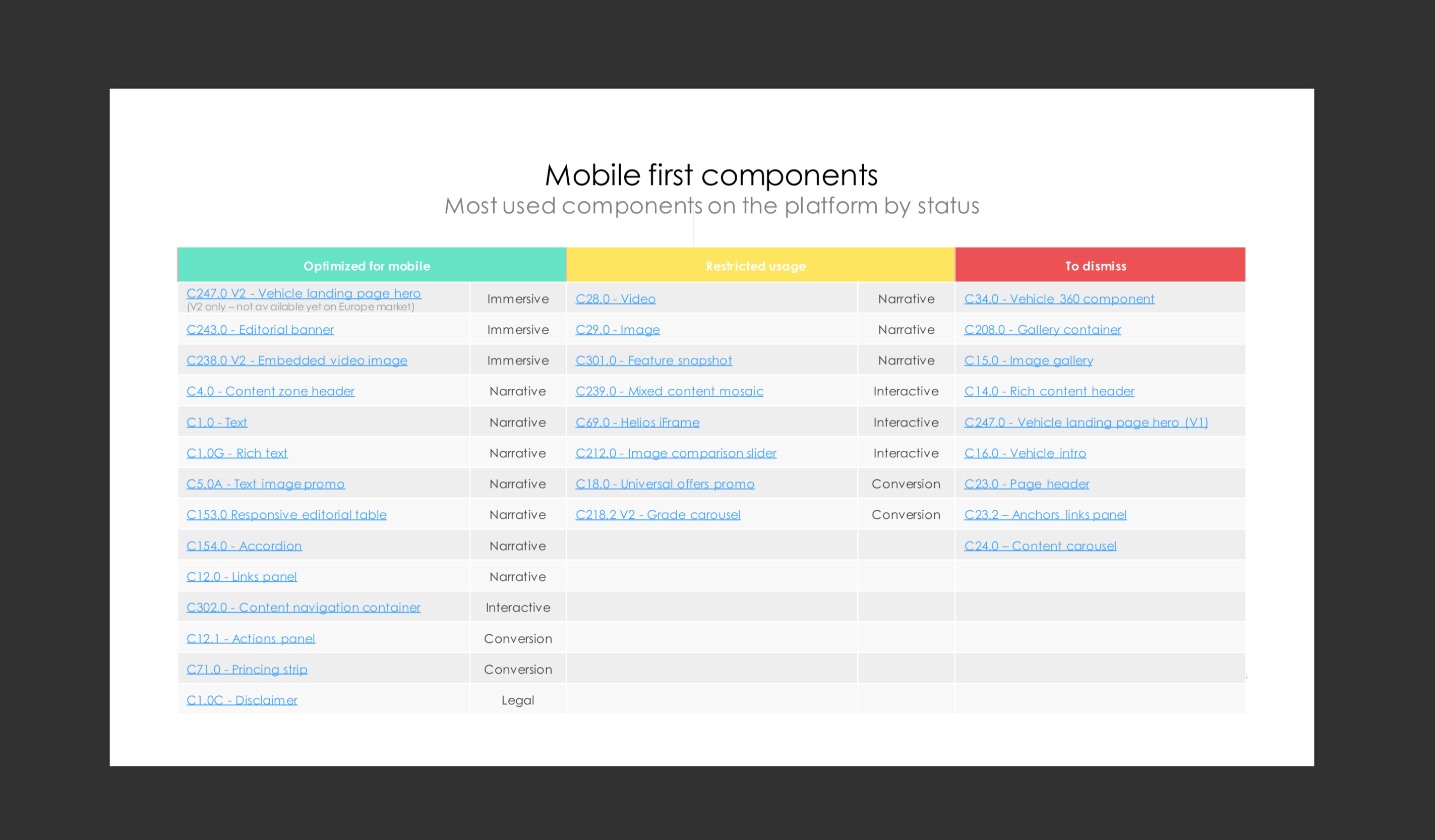 - Écriture de documents de guidelines afin d’optimiser l’utilisation des composants répertoriés pour leur usage mobile