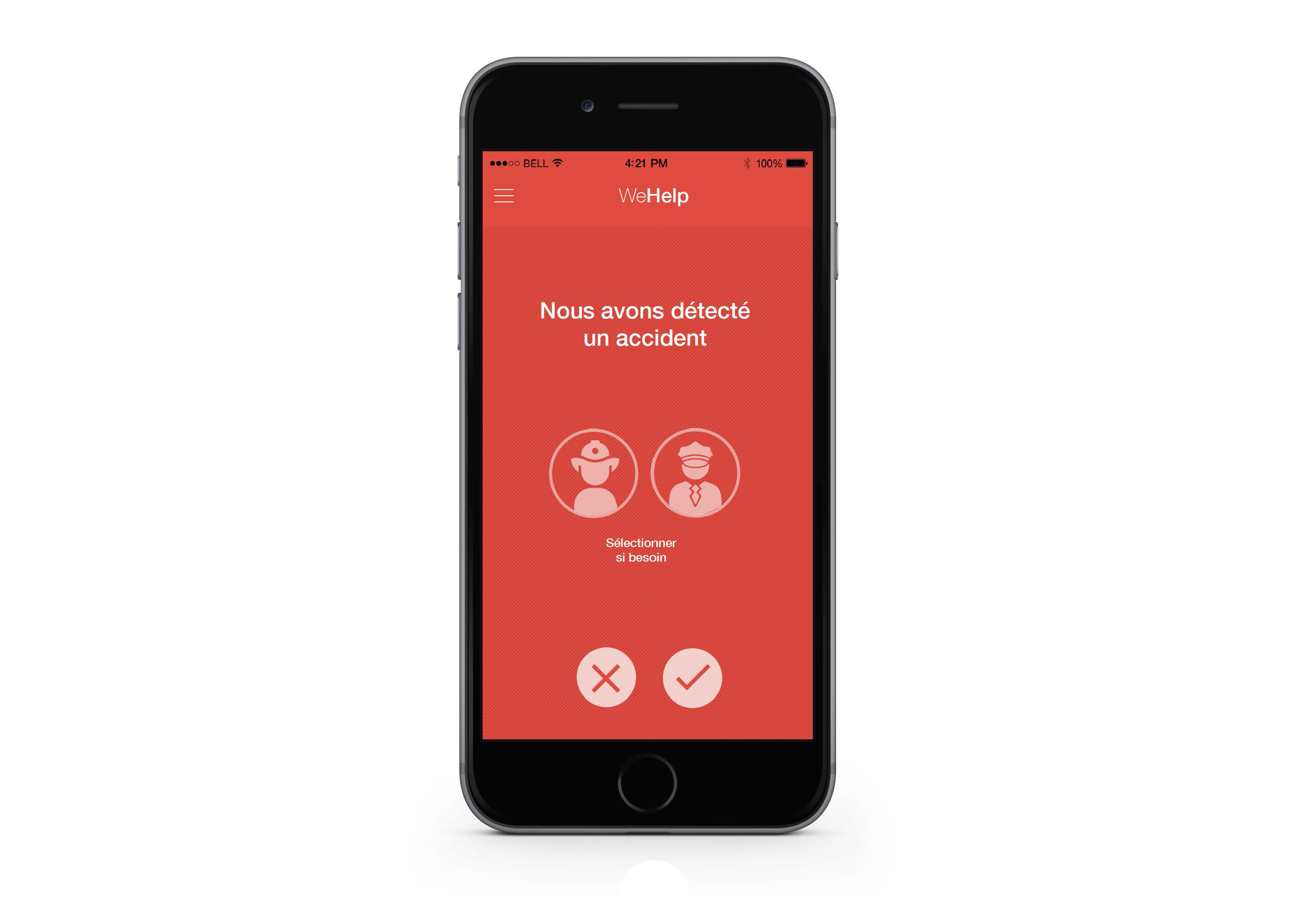 Notre client possédant déjà un objet connecté pour voiture, nous l’avons utilisé afin de l’améliorer. Ce dernier enregistre en cas de sinistre toutes les informations à savoir pour directement envoyer ça aux différents corps de métiers concernés (garage, expert automobile, assurance, assuré).